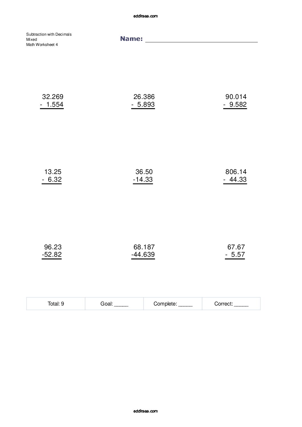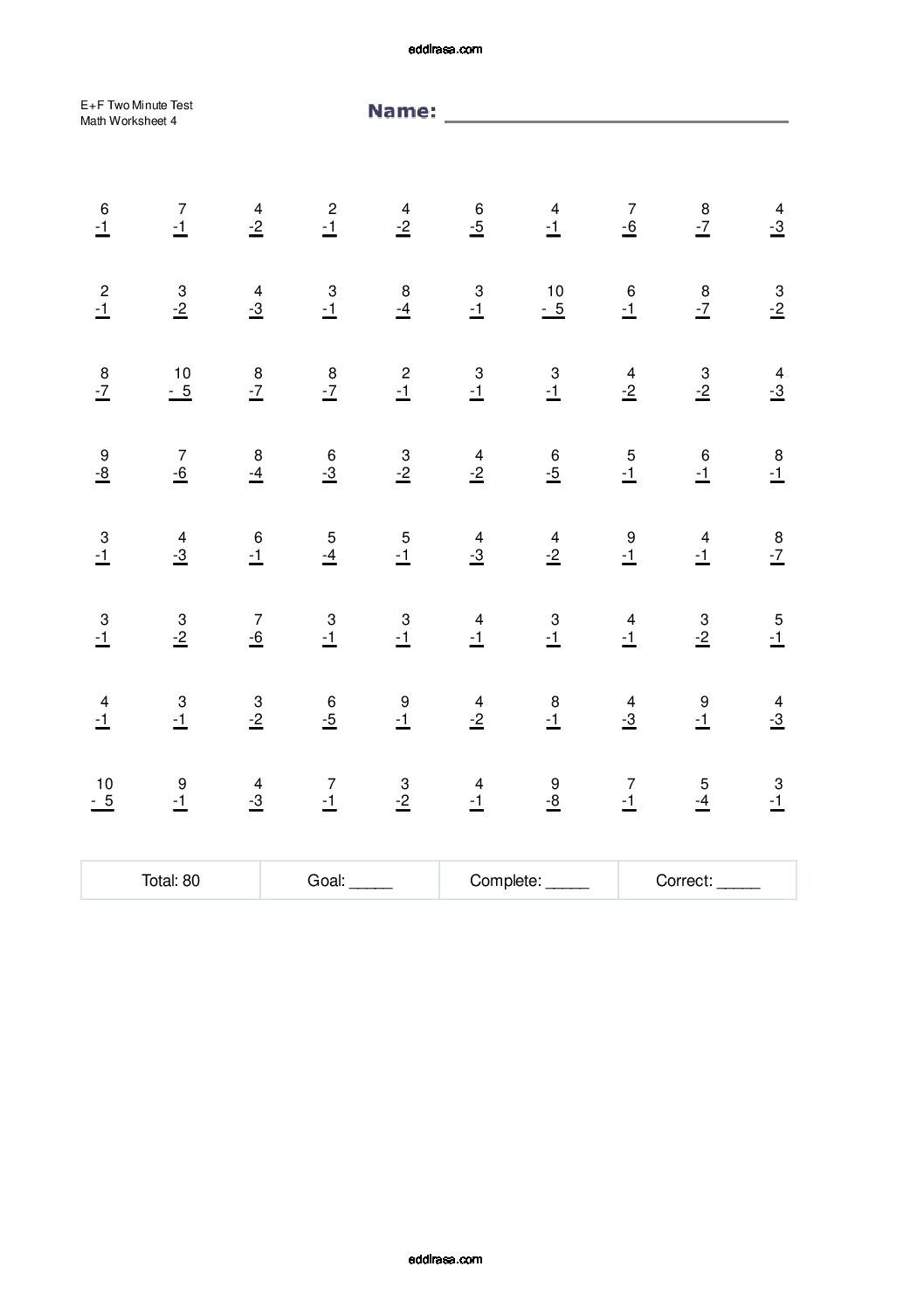 بطاقات الأنشطة الحسابية: بطاقات تعليمية حول عمليات الطرح