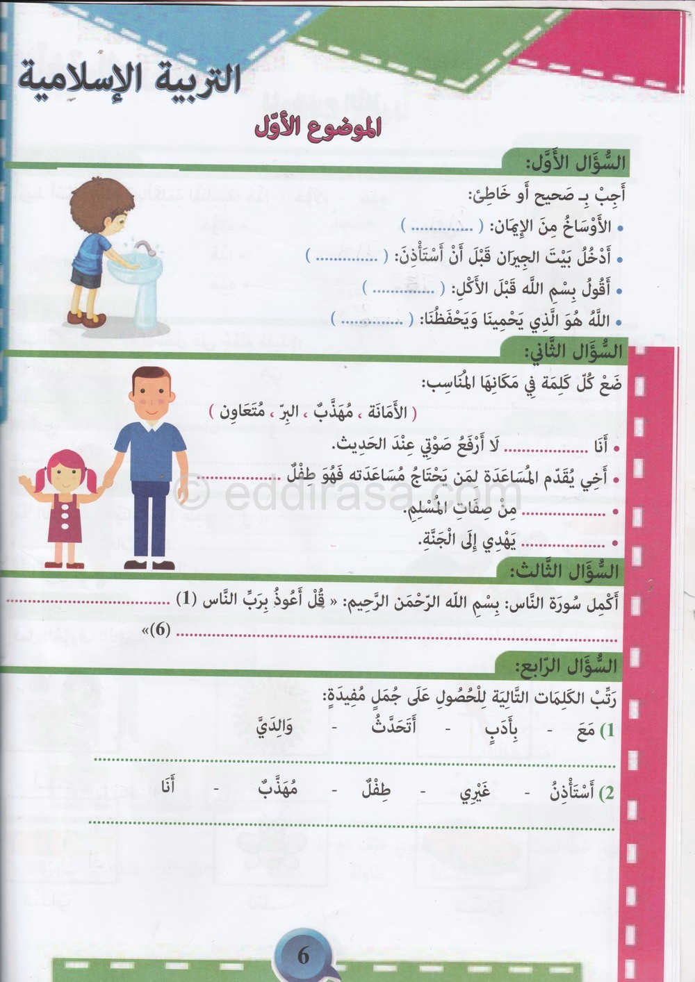 تمارين في مادة التربية الإسلامية للسنة الأولى ابتدائي : تمارين مقترحة رقم 01- في مادة التربية الاسلامية ، مستوى السنة الأولى ابتدائي الجيل الثاني ، السنة الدراسية: 2021/2022 مع التصحيح