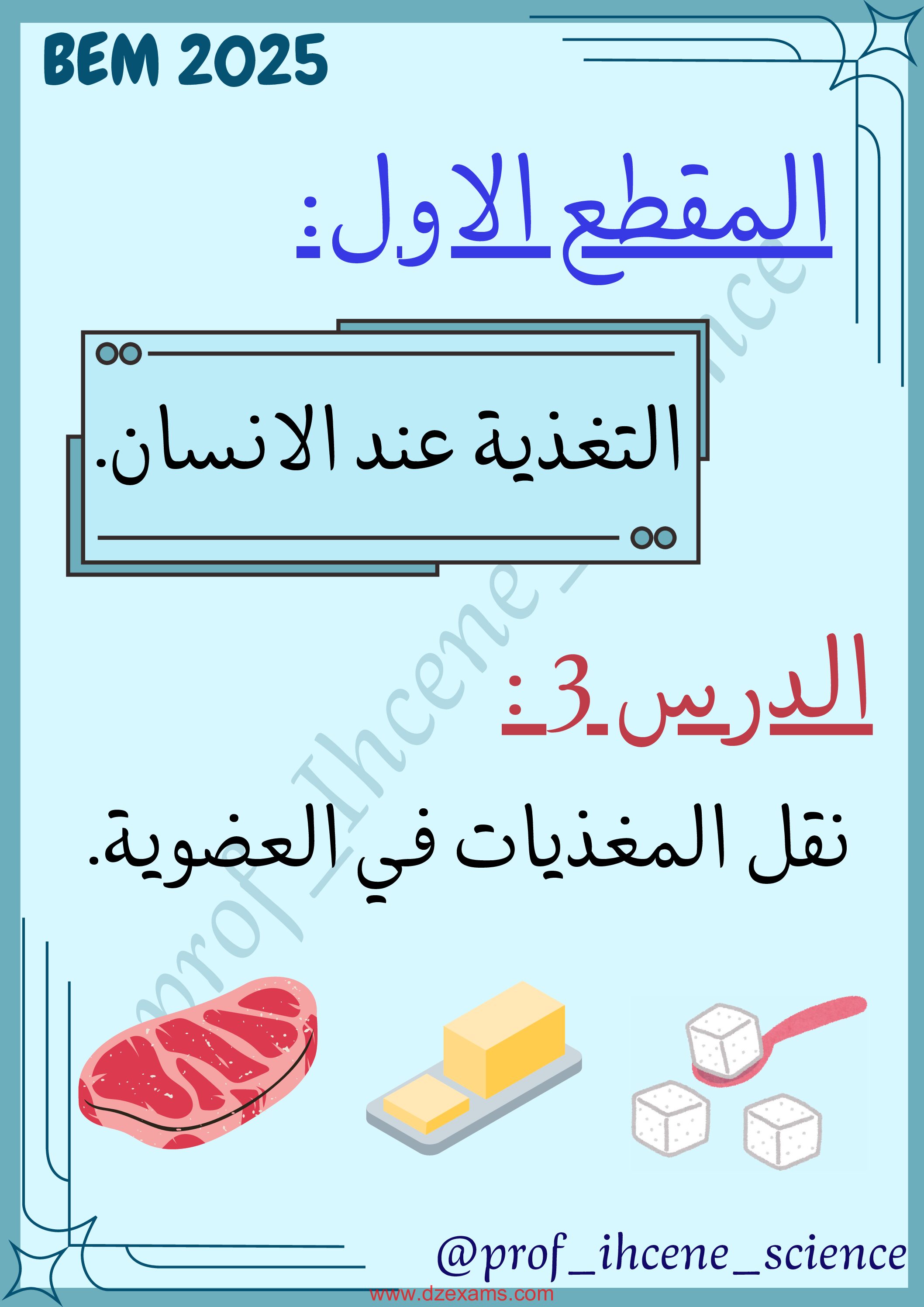درس نقل المغذيات في العضوية للأستاذ إحسان 4 متوسط منهجية العلوم الطبيعية من متوسطة الشهيد ضبابي اقويدر 4 متوسط مادة العلوم الطبيعية للسنة الرابعة 4 متوسط دروس مفصلة، فروض واختبارات، تمارين محلولة: