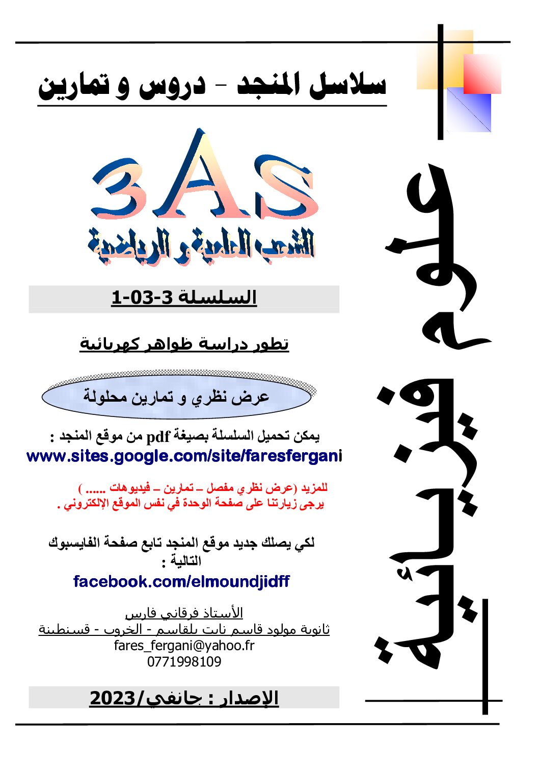 سلسلة دراسة ظواهر كهربائية في الفيزياء للأستاذ فارس فرقاني 3 ثانوي مادة العلوم الفيزيائية السنة الثالثة ثانوي : 100 سؤال وجواب نظري في الفيزياء لتحضير البكالوريا إعداد الأستاذ شريفي شعب علوم تجريبية ، رياضيات ، تقني رياضي: