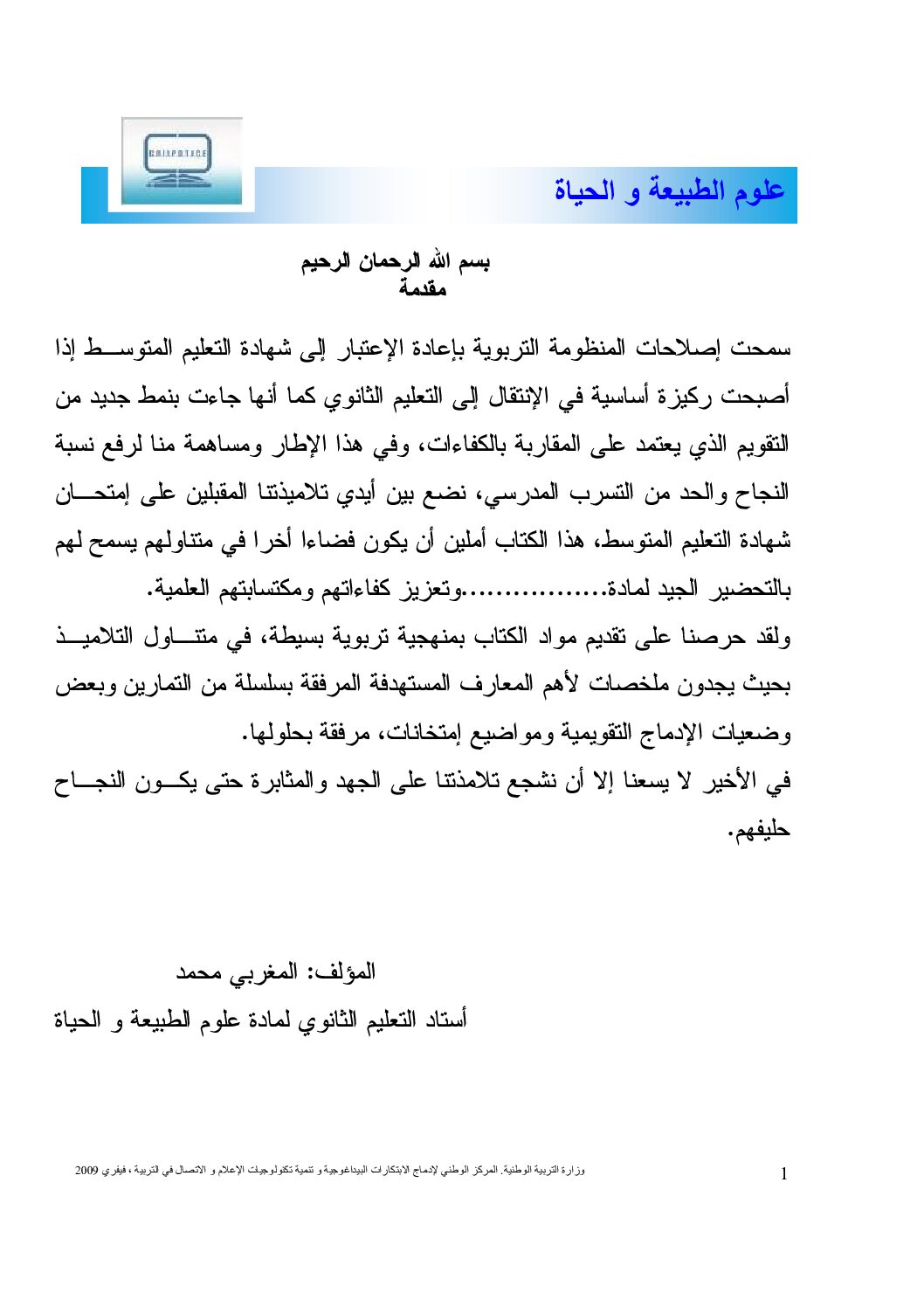 كتاب في العلوم الطبيعية من إعداد وزارة التربية الوطنية 4 متوسط منهجية العلوم الطبيعية من متوسطة الشهيد ضبابي اقويدر 4 متوسط مادة العلوم الطبيعية للسنة الرابعة 4 متوسط دروس مفصلة، فروض واختبارات، تمارين محلولة: