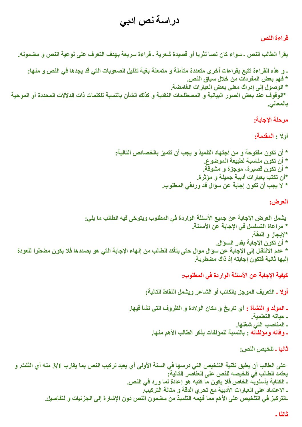 كيفية تحليل النصوص الادبية في مادة اللغة العربية 3 ثانوي مادة اللغة العربية للسنة الثالثة ثانوي : ملخص أنواع النصوص الأدبية و أساليبها وأنماطها وطبيعتها ، ملخصات بكالوريا مادة اللغة العربية للسنة الثالثة ثانوي