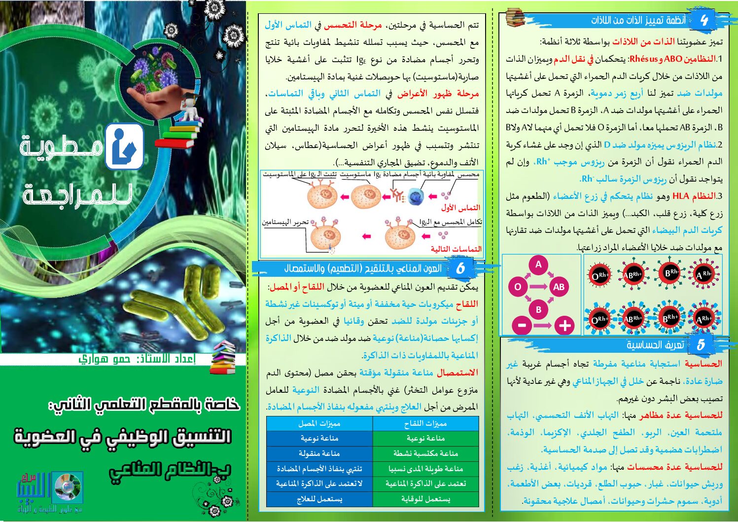 مطوية لمراجعة درس التنسيق الوظيفي في العضوية النظام المناعي 4 متوسط منهجية العلوم الطبيعية من متوسطة الشهيد ضبابي اقويدر 4 متوسط مادة العلوم الطبيعية للسنة الرابعة 4 متوسط دروس مفصلة، فروض واختبارات، تمارين محلولة: