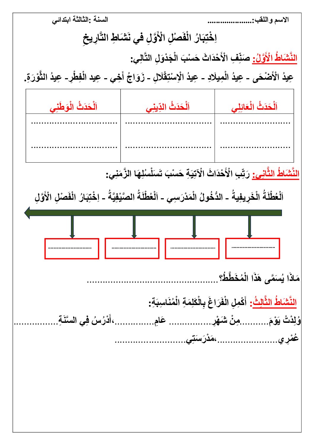 مادة التاريخ والجغرافيا للسنة الثالثة ابتدائي : نموذج لإمتحان في الفصل الأول رقم 84- في مادة التاريخ والجغرافيا مستوى السنة الثالثة ابتدائي الجيل الثاني ، السنة الدراسية: 2025/2026 مع التصحيح
