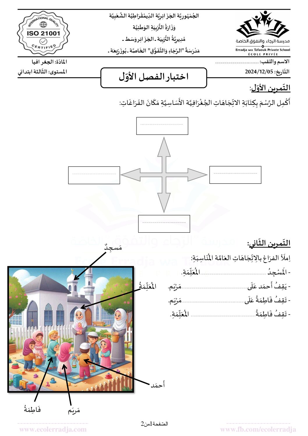 مادة التاريخ والجغرافيا للسنة الثالثة ابتدائي : نموذج لإمتحان في الفصل الأول رقم 86- في مادة التاريخ والجغرافيا مستوى السنة الثالثة ابتدائي الجيل الثاني ، السنة الدراسية: 2025/2026 مع التصحيح
