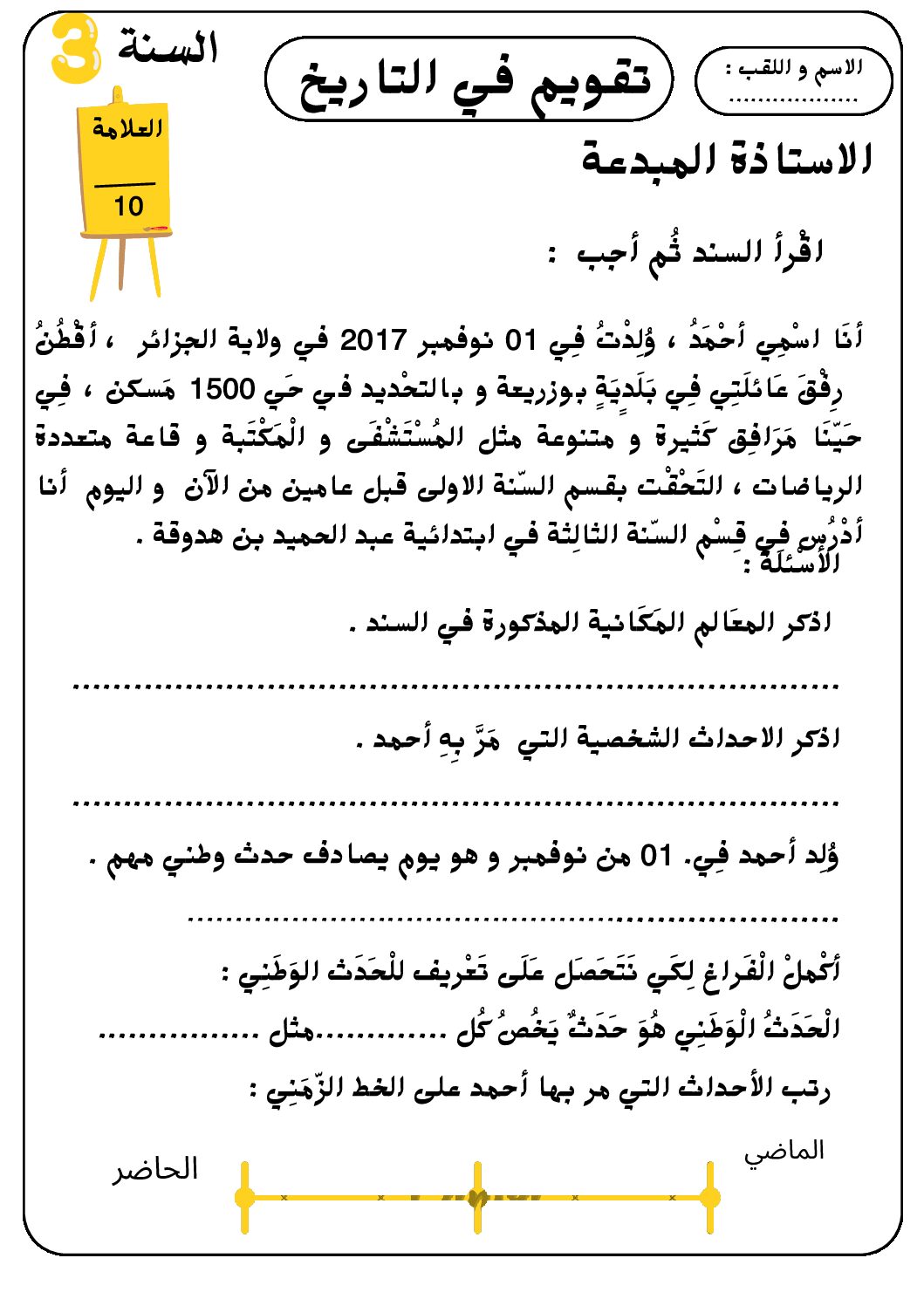 التاريخ والجغرافيا السنة الثالثة ابتدائي
