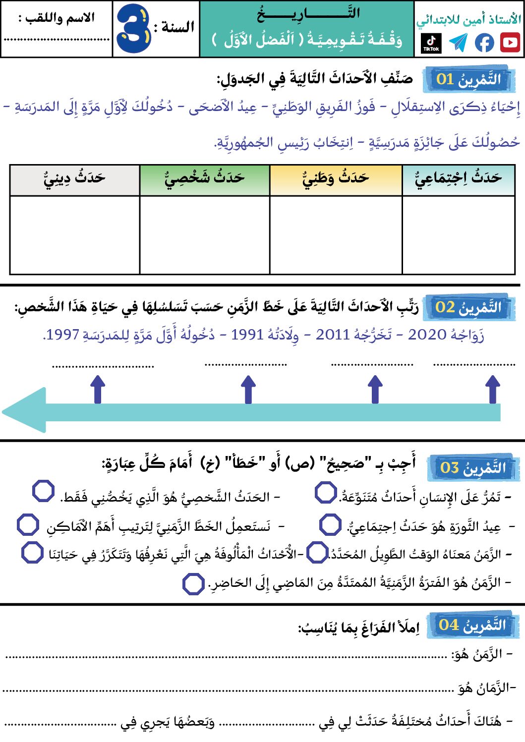 التاريخ والجغرافيا السنة الثالثة ابتدائي