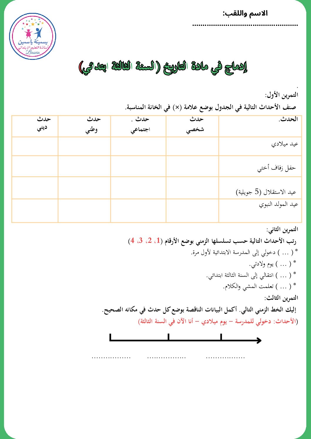 التاريخ والجغرافيا السنة الثالثة ابتدائي