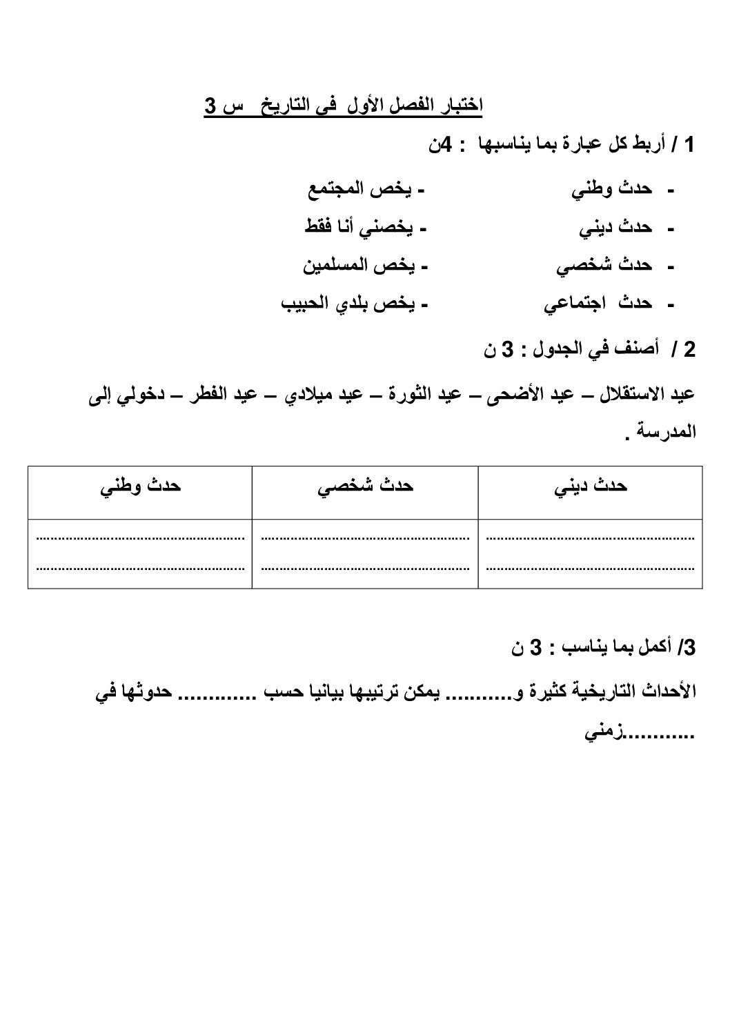 مادة التاريخ والجغرافيا للسنة الثالثة ابتدائي : نموذج لإمتحان في الفصل الأول رقم 101- في مادة التاريخ والجغرافيا مستوى السنة الثالثة ابتدائي الجيل الثاني ، السنة الدراسية: 2025/2026 مع التصحيح