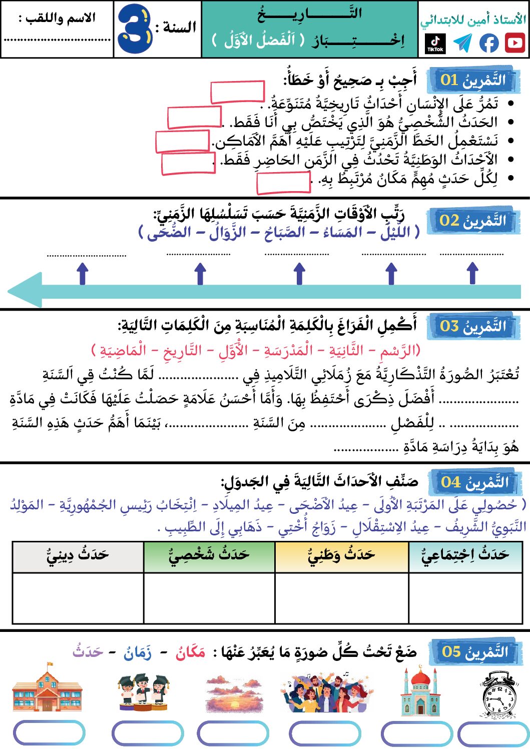 التاريخ والجغرافيا السنة الثالثة ابتدائي