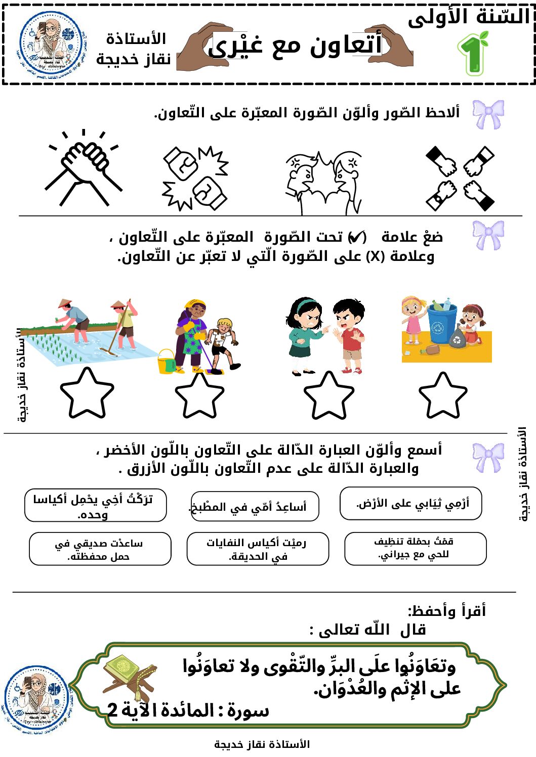 مادة التربية الإسلامية للسنة الأولى ابتدائي : نموذج لإمتحان في الفصل الأول رقم 15- في مادة التربية الإسلامية مستوى السنة الأولى ابتدائي الجيل الثاني ، السنة الدراسية: 2025/2026 مع التصحيح