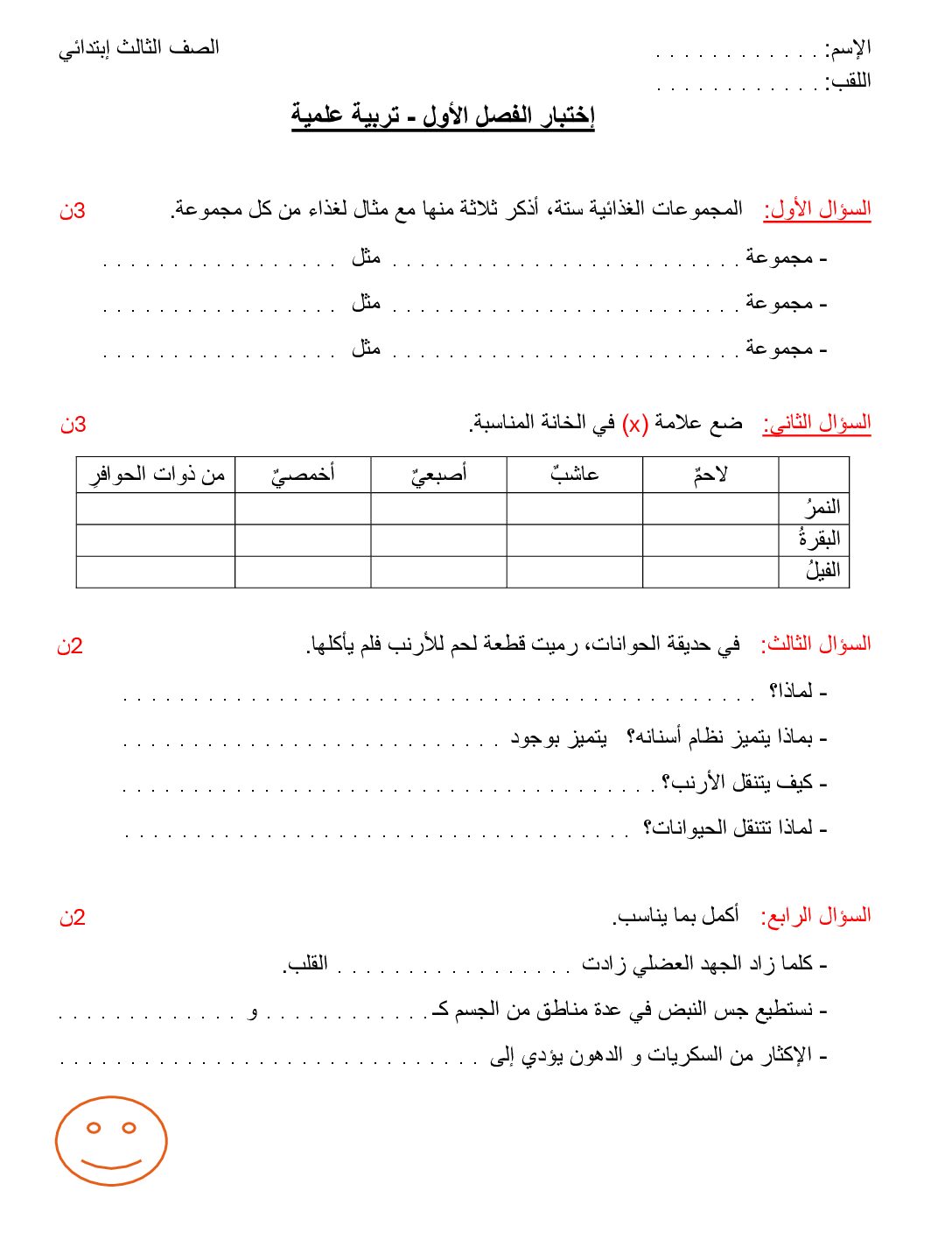 مادة التربية العلمية والتكنولوجية للسنة الثالثة ابتدائي : نموذج لإمتحان في الفصل الأول رقم 67- في مادة التربية العلمية والتكنولوجية مستوى السنة الثالثة ابتدائي الجيل الثاني ، السنة الدراسية: 2025/2026 مع التصحيح