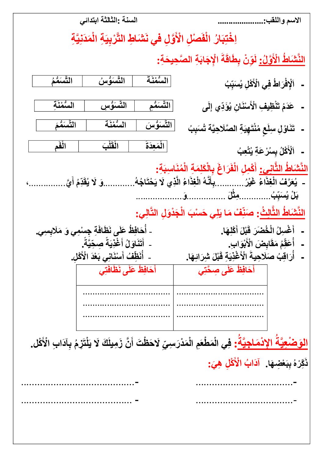 التربية المدنية السنة الثالثة ابتدائي