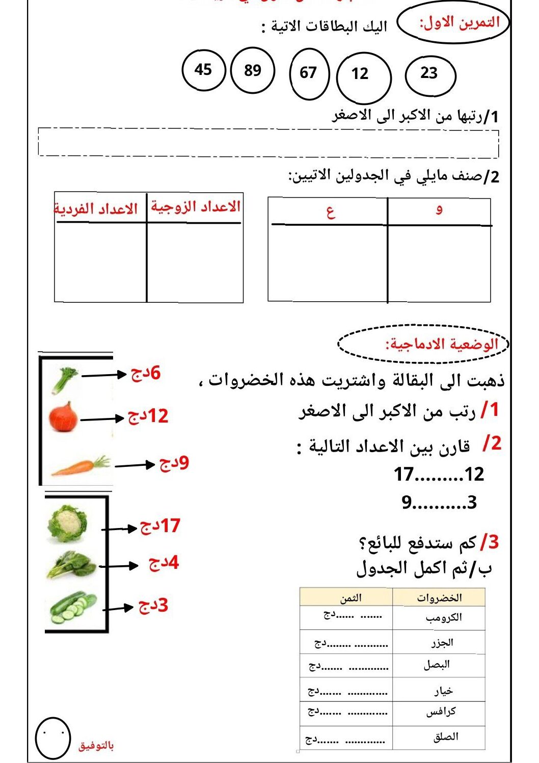 مادة الرياضيات للسنة السنة الثانية ابتدائي : نموذج لإمتحان في الفصل الأول رقم 114- في مادة الرياضيات مستوى السنة الثانية ابتدائي الجيل الثاني ، السنة الدراسية: 2025/2026 مع التصحيح