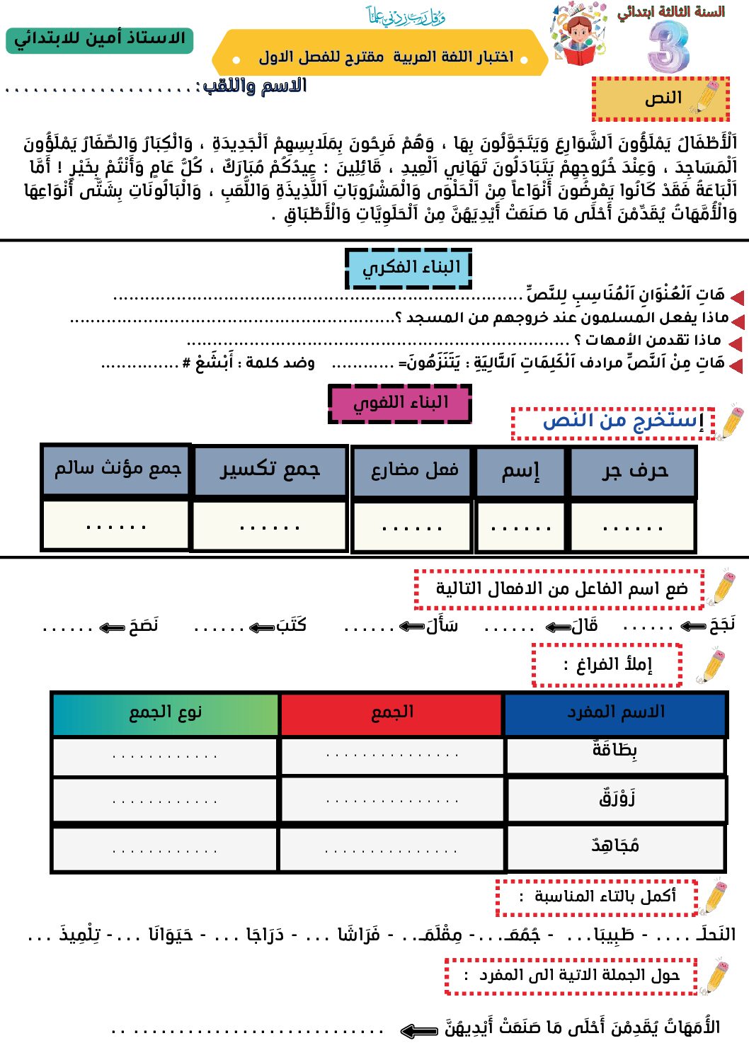 اللغة العربية السنة الثالثة ابتدائي