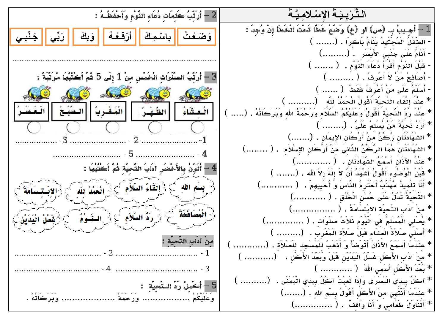 إختبار الفصل الثالث في التربية الإسلامية السنة الأولى ابتدائي رقم 45