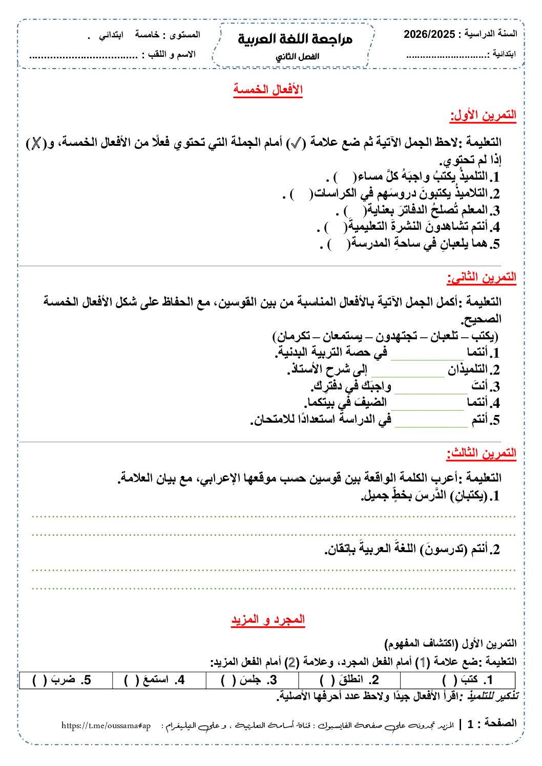 اللغة العربية السنة الخامسة ابتدائي
