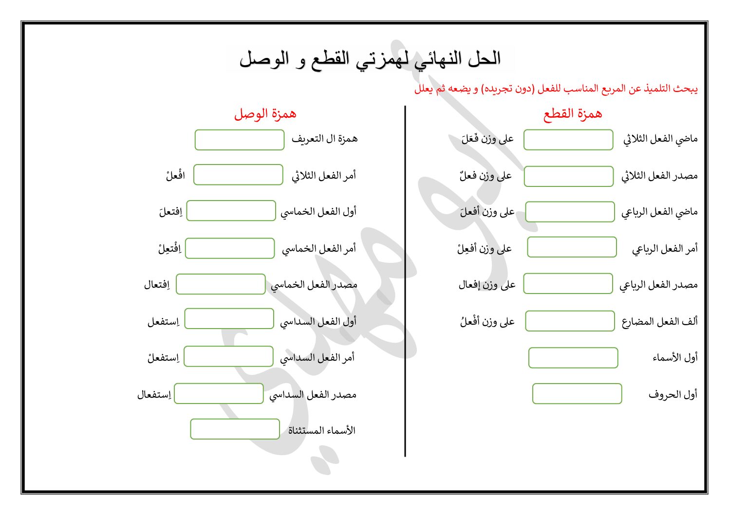 الحل النهائي لفهم همزة الوصل وهمزة القطع 5 ابتدائي مادة اللغة العربية للسنة الخامسة 5 ابتدائي دروس مفصلة ، فروض واختبارات، تمارين محلولة: تقويم تشخيصي في اللغة العربية سنة خامسة ابتدائي