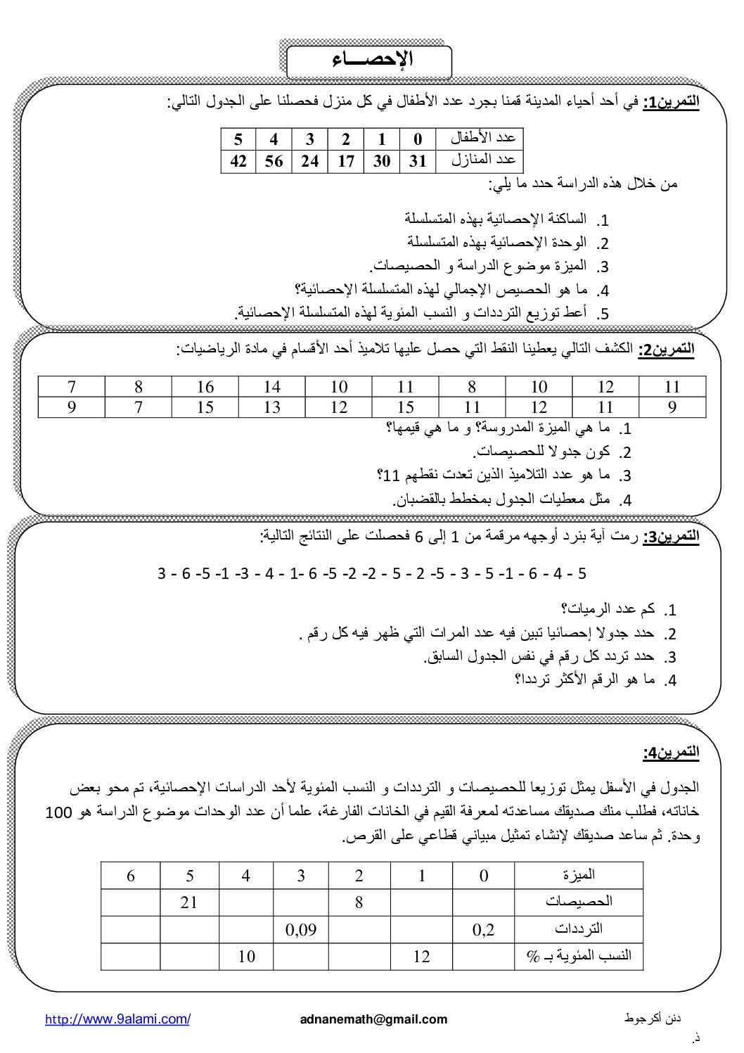 المستوى الأول سلسلة تمارين في الإحصاء رياضيات 4 متوسط المستوى الأول سلسلة تمارين الأعداد العشرية تمارين رياضيات من مناهج أجنبية سنة 4 متوسط سلاسل تمارين وتطبيقات محلولة في الرياضيات سنة رابعة متوسط maths 4AM