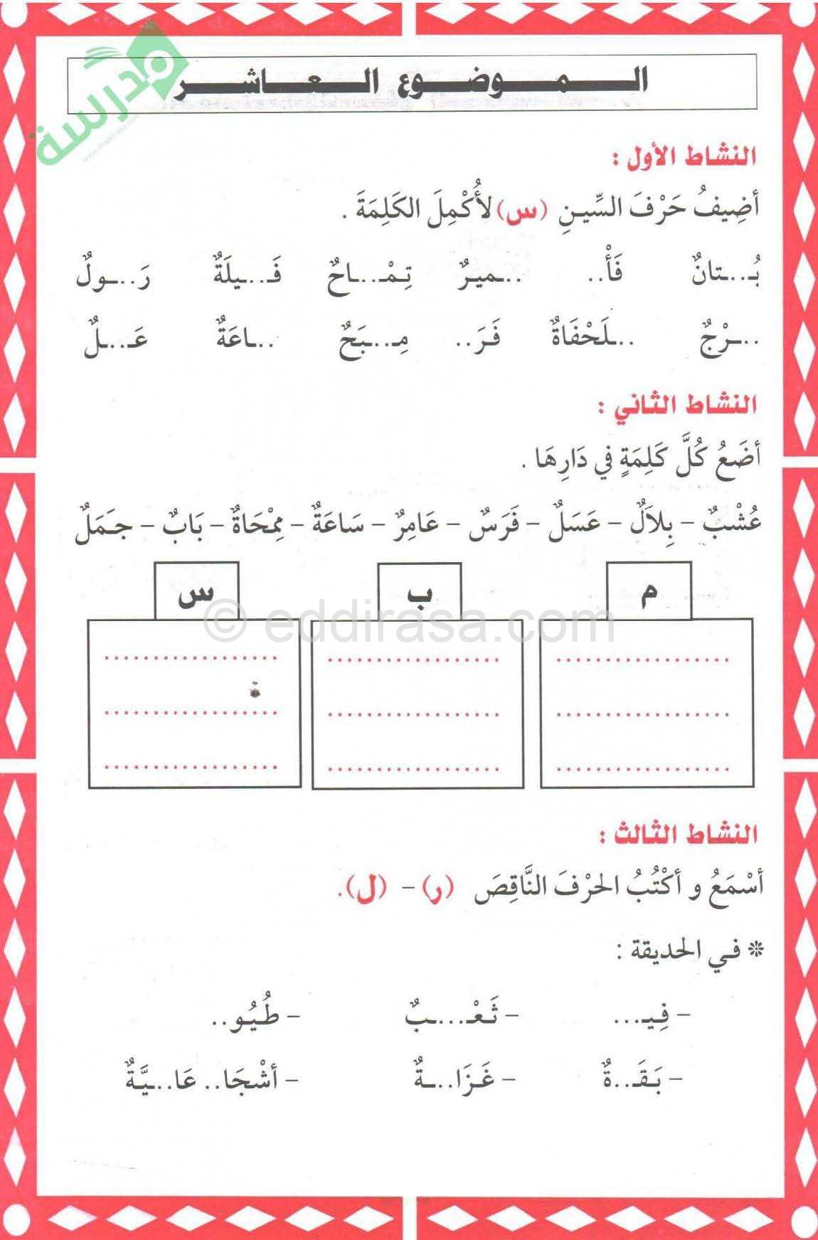 مادة : اللغة العربية للسنة الأولى ابتدائي : دروس مفصلة ، فروض واختبارات، تمارين محلولة: . الموضوع 10 – تمارين لغة عربية محلولة 1 ابتدائي الجيل الثاني
