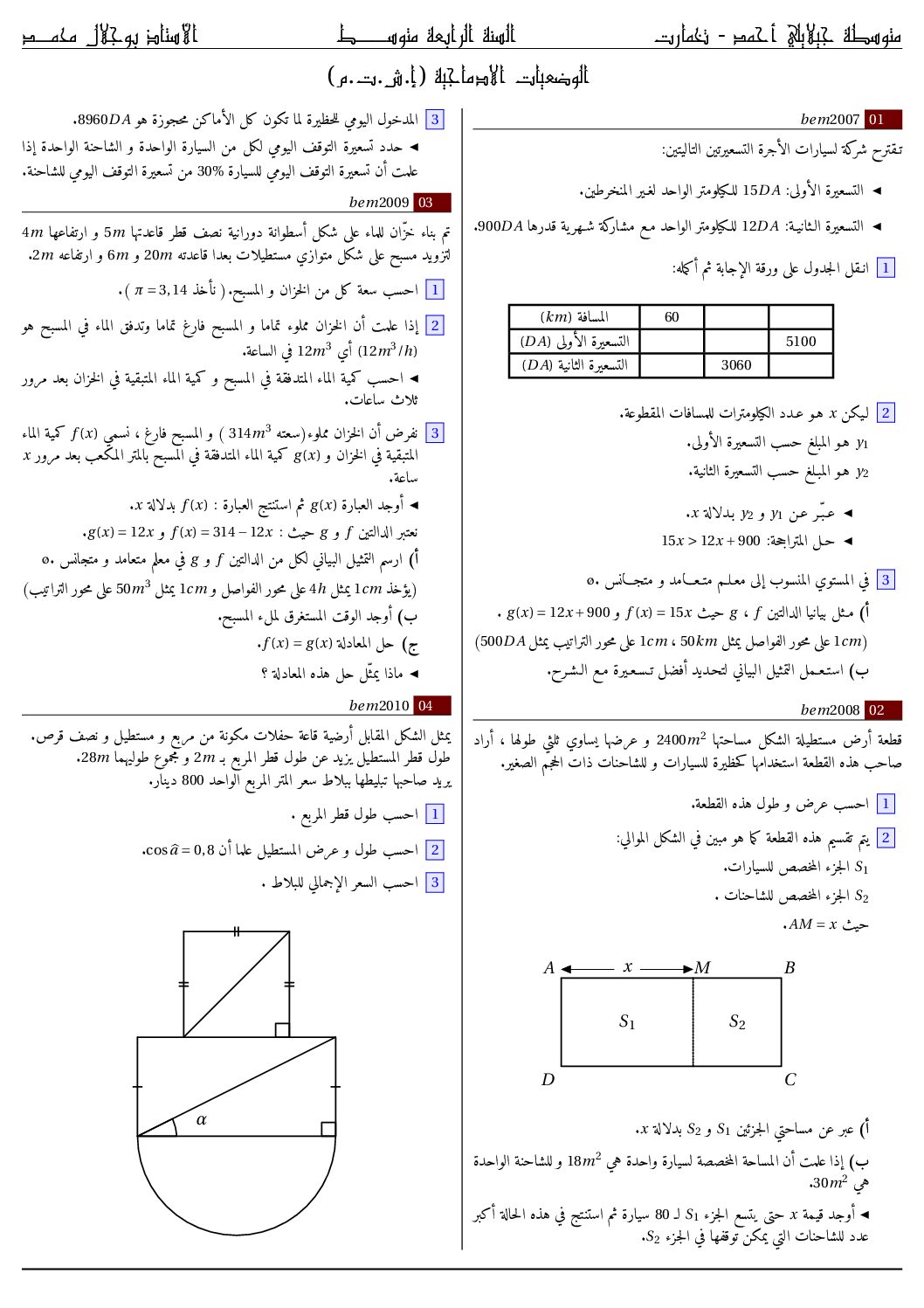 الوضعيات الادماجية لشهادة التعليم المتوسط في الرياضيات 4 متوسط 14 سؤال و جواب حول الدالة الخطية و الدالة التالفية في الرياضيات 4 متوسط : سلاسل تمارين وتطبيقات محلولة في الرياضيات سنة رابعة متوسط maths 4AM: ملفات تعليمية في مادة الرياضيات لتحضير شهادة التعليم المتوسط