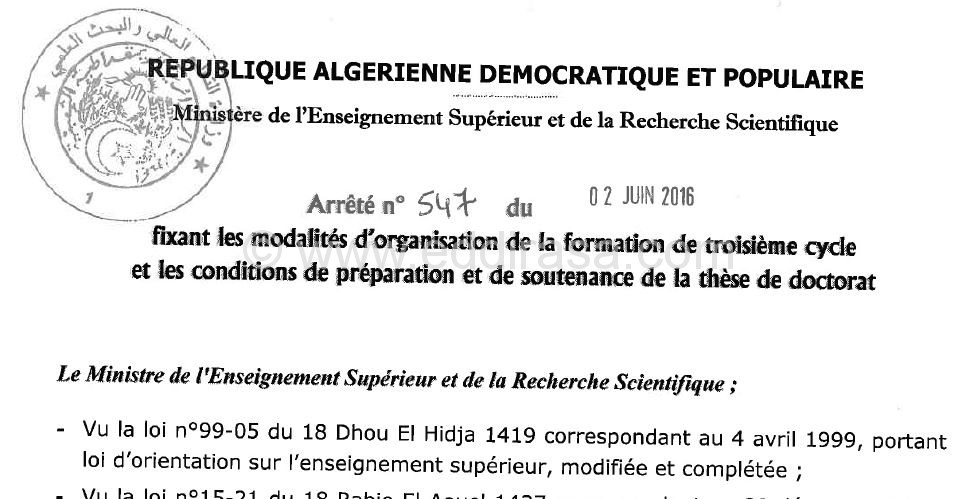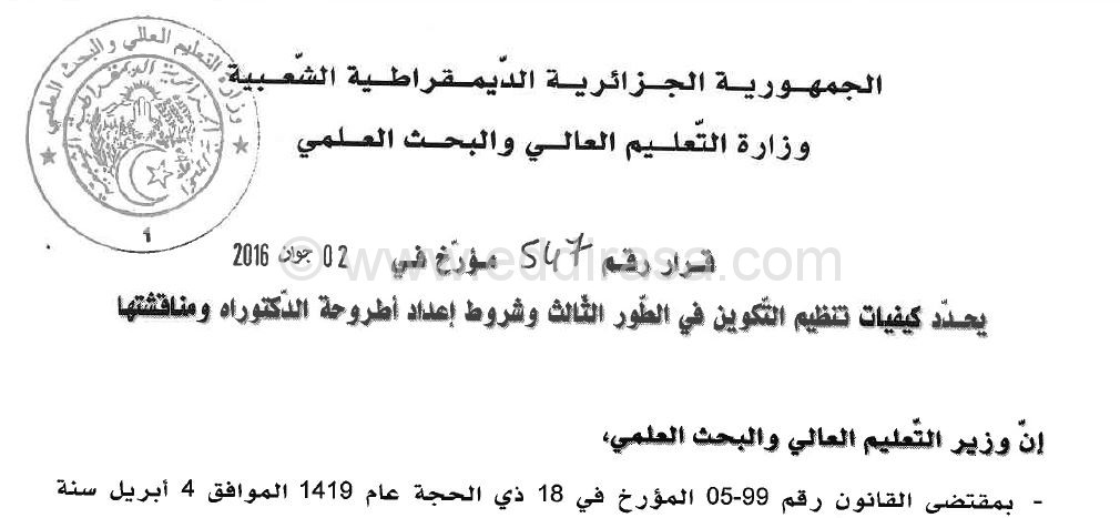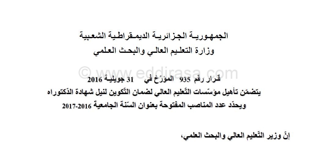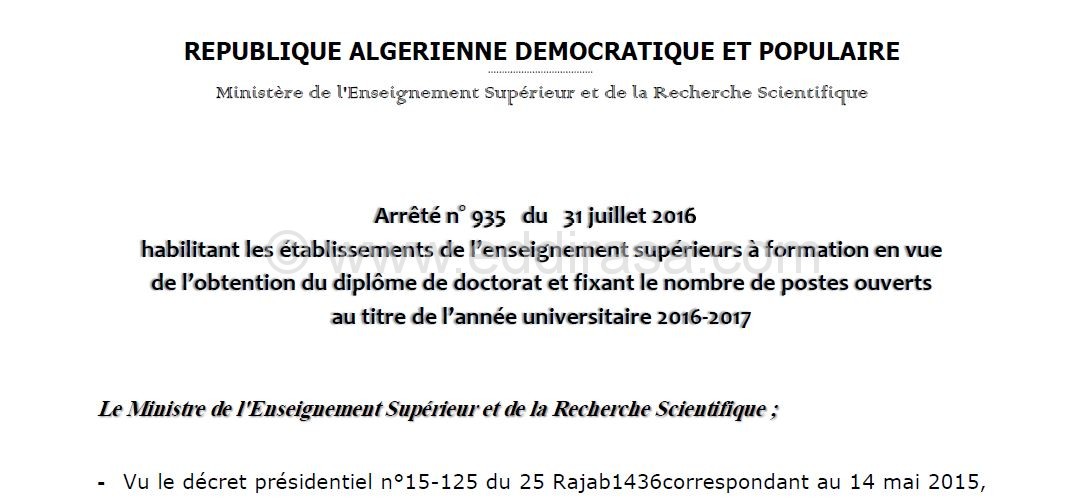 أطلقت وزارة التعليم العالي و البحث العلمي موقع إلكتروني بمثابة بوابة للبحث عن مسابقات الدكتوراه في مختلف الميادين و الفروع، ويمكن للراغبين الالتحاق بالدكتوراه البحث في الموقع الخاص بالوزارة عن مسابقات الدكتوراه الممعلنة في كل الجامعات الجزائرية عبر الوطن.