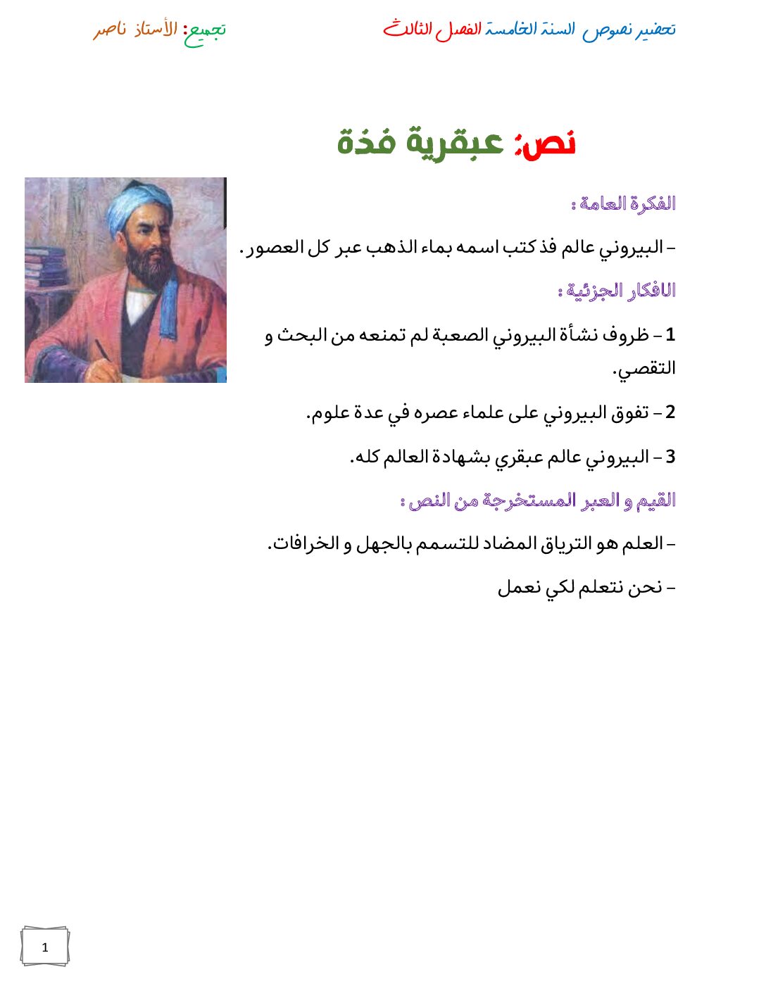 تحضير نصوص الفصل الثالث في اللغة العربية من إعداد الاستاذ ناصر 5 ابتدائي مادة اللغة العربية للسنة الخامسة 5 ابتدائي دروس مفصلة ، فروض واختبارات، تمارين محلولة: تقويم تشخيصي في اللغة العربية سنة خامسة ابتدائي