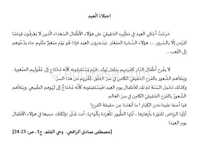 تحضير نص إجتلاء العيد :