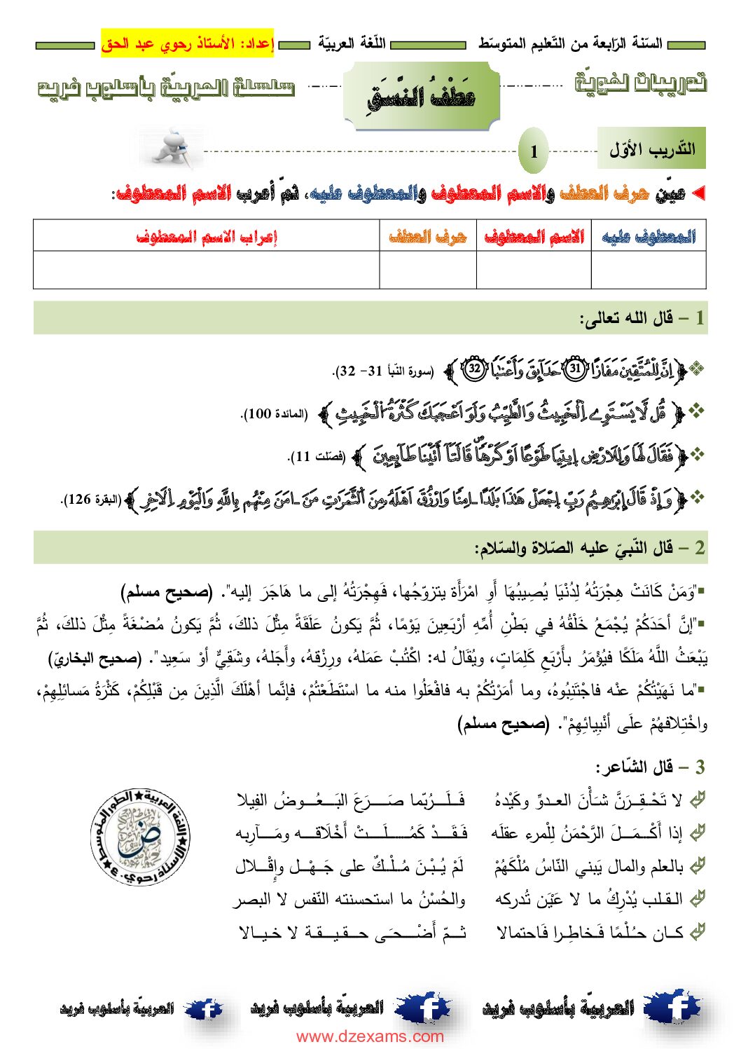 تدريبات لغوية حول عطف النسق للأستاذ رحوي عبد الحق 4 متوسط