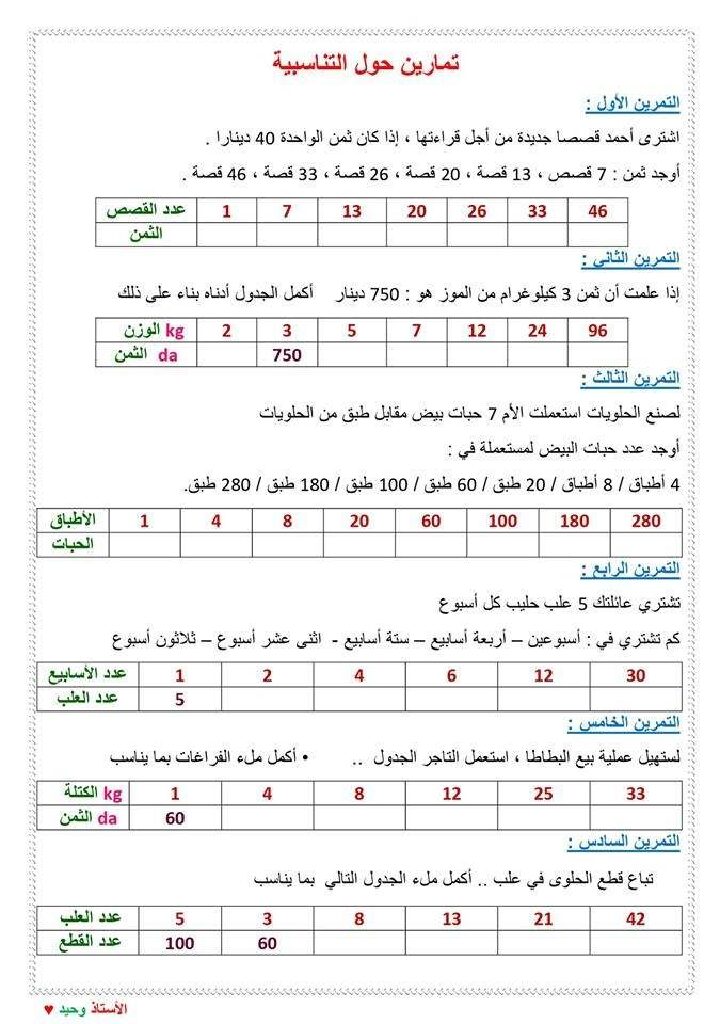 تمارين حول التناسبية مع الحل في مادة الرياضيات للاستاذ وحيد 5 ابتدائي وضعية شاملة في الرياضيات رقم 02 مع الحل للأستاذة مريم بوخشم 5 ابتدائي مادة الرياضيات للسنة الخامسة 5 ابتدائي دروس مفصلة ، فروض واختبارات، تمارين محلولة: ملخص دروس الرياضيات للسنة الخامسة ابتدائي