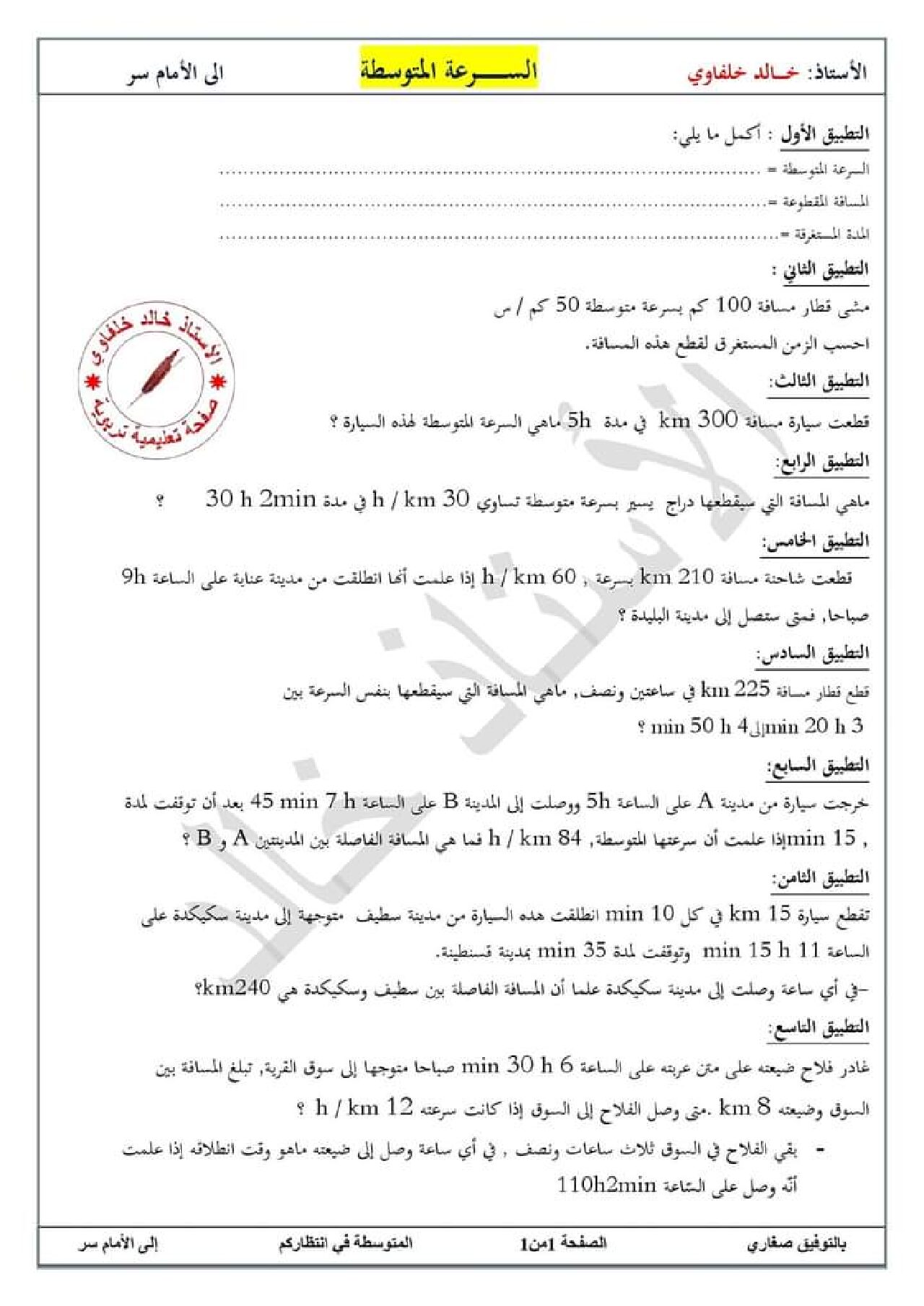 تمارين حول السرعة المتوسطة مع الحل من إعداد الاستاذ خالد خلفاوي 5 ابتدائي وضعية شاملة في الرياضيات رقم 02 مع الحل للأستاذة مريم بوخشم 5 ابتدائي مادة الرياضيات للسنة الخامسة 5 ابتدائي دروس مفصلة ، فروض واختبارات، تمارين محلولة: ملخص دروس الرياضيات للسنة الخامسة ابتدائي