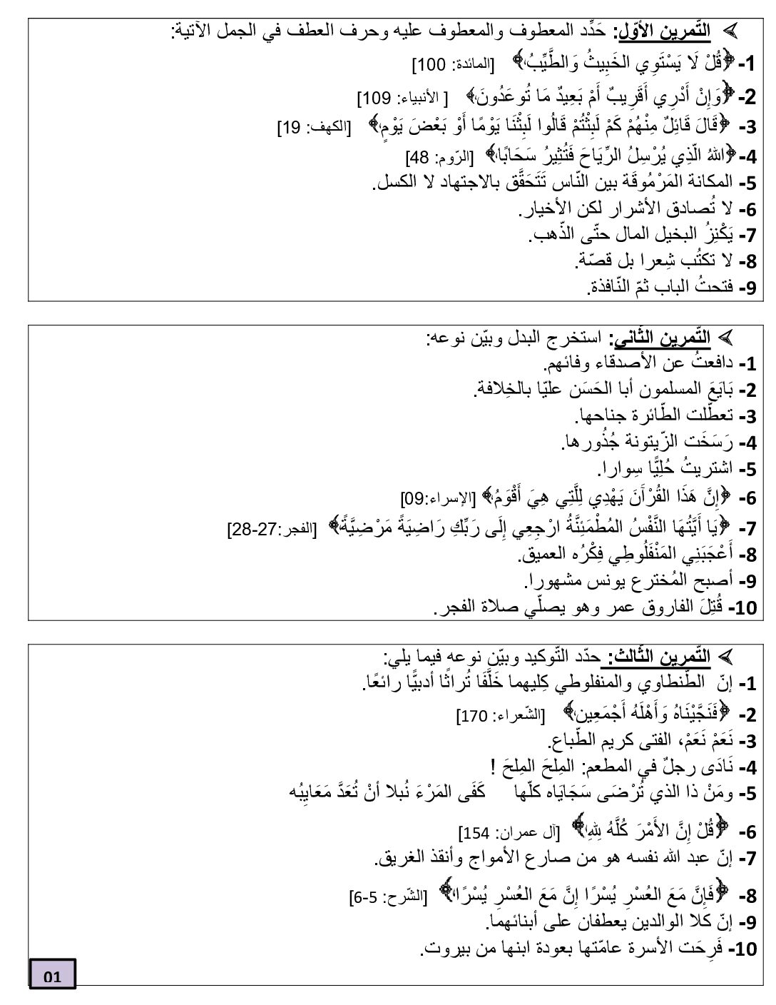 تمارين شاملة لدروس مادة اللغة العربية 4 متوسط