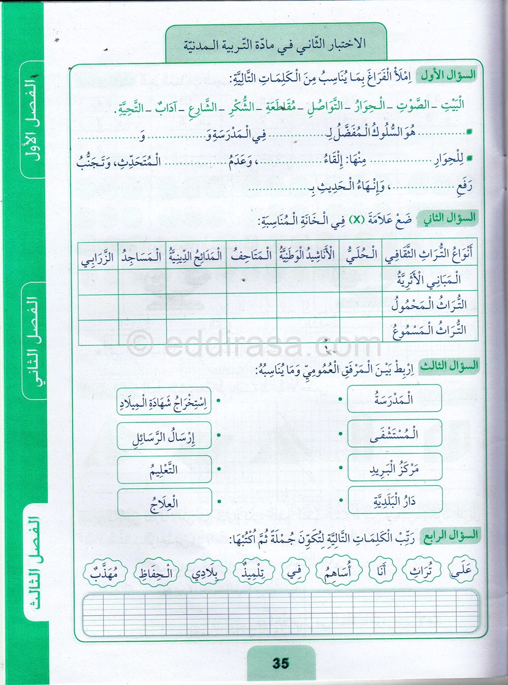 تمارين في مادة التربية المدنية للسنة الثانية ابتدائي : تمارين وتقويمات مقترحة الموضوع رقم 06- في مادة التربية المدنية، مستوى السنة الثانية ابتدائي الجيل الثاني ، السنة الدراسية: 2021/2022