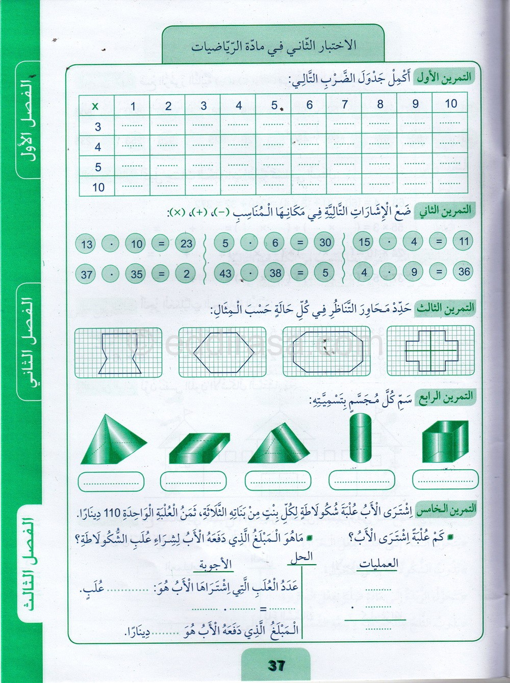 تمارين في مادة الرياضيات للسنة الثانية ابتدائي : تمارين وتقويمات مقترحة الموضوع رقم 07- في مادة الرياضيات، مستوى السنة الثانية ابتدائي الجيل الثاني ، السنة الدراسية: 2021/2022
