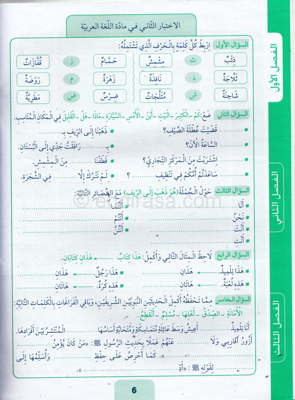 تمارين في مادة اللغة العربية للسنة الثانية ابتدائي : تمارين وتقويمات مقترحة الموضوع رقم 02- في مادة اللغة العربية، مستوى السنة الثانية ابتدائي الجيل الثاني ، السنة الدراسية: 2021/2022