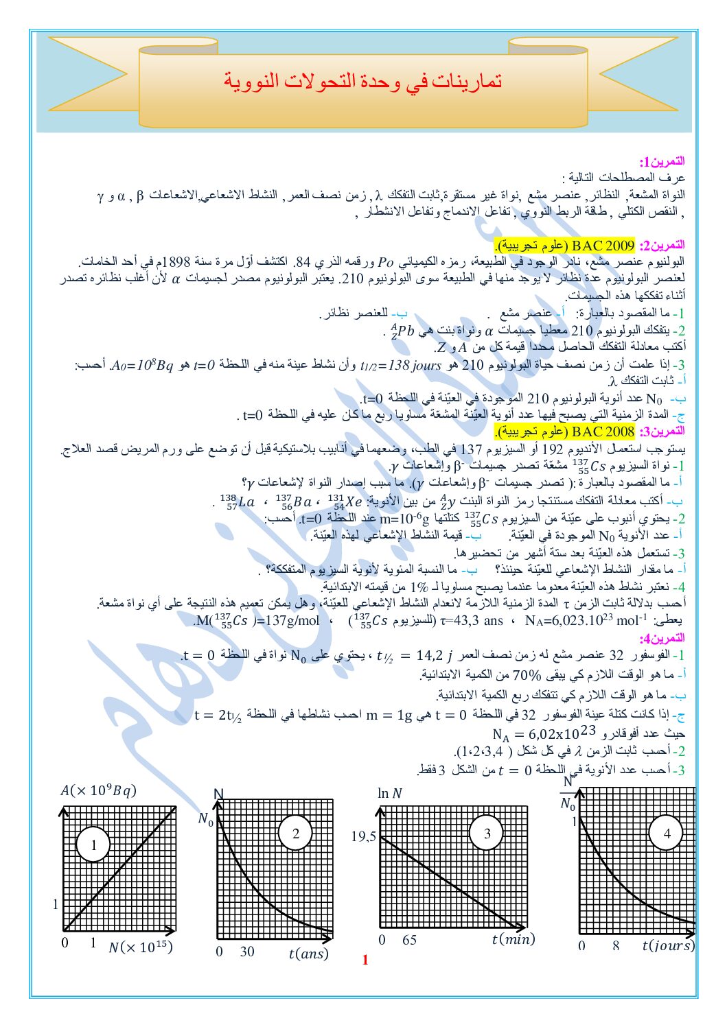 تمارين وحدة التحولات النووية في الفيزياء للأستاذ التيجاني دهام 3 ثانوي سلسلة ظواهر الانتشار في الفيزياء للأستاذ فارس فرقاني 3 ثانوي مادة العلوم الفيزيائية السنة الثالثة ثانوي : 100 سؤال وجواب نظري في الفيزياء لتحضير البكالوريا إعداد الأستاذ شريفي شعب علوم تجريبية ، رياضيات ، تقني رياضي: