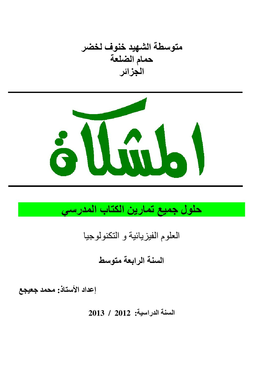 حلول تمارين الكتاب المدرسي علوم فيزيائية إعداد الأستاذ محمد جعيجع 4 متوسط