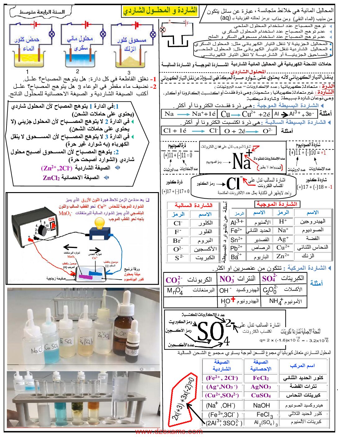 درس الشاردة والمحلول الشاردي في مادة العلوم الفيزيائية 4 متوسط