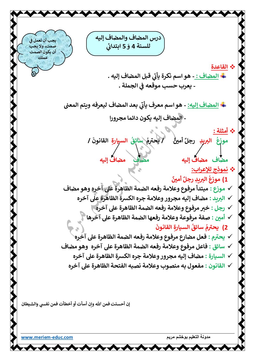 درس المضاف والمضاف إليه للأستاذة مريم بوخشم 5 ابتدائي