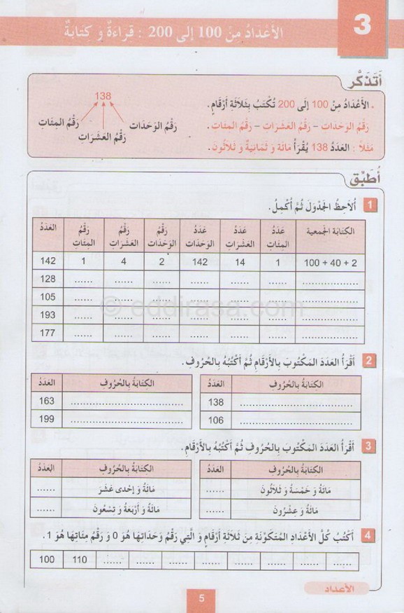 مادة : الرياضيات للسنة الثانية ابتدائي : دروس مفصلة ، فروض واختبارات، تمارين محلولة: دروس مادة الرياضيات للسنة الثانية من التعليم الإبتدائي الجيل الثاني. دروس الرياضيات – الأعداد من 100 إلى 200 – قراءة و كتابة