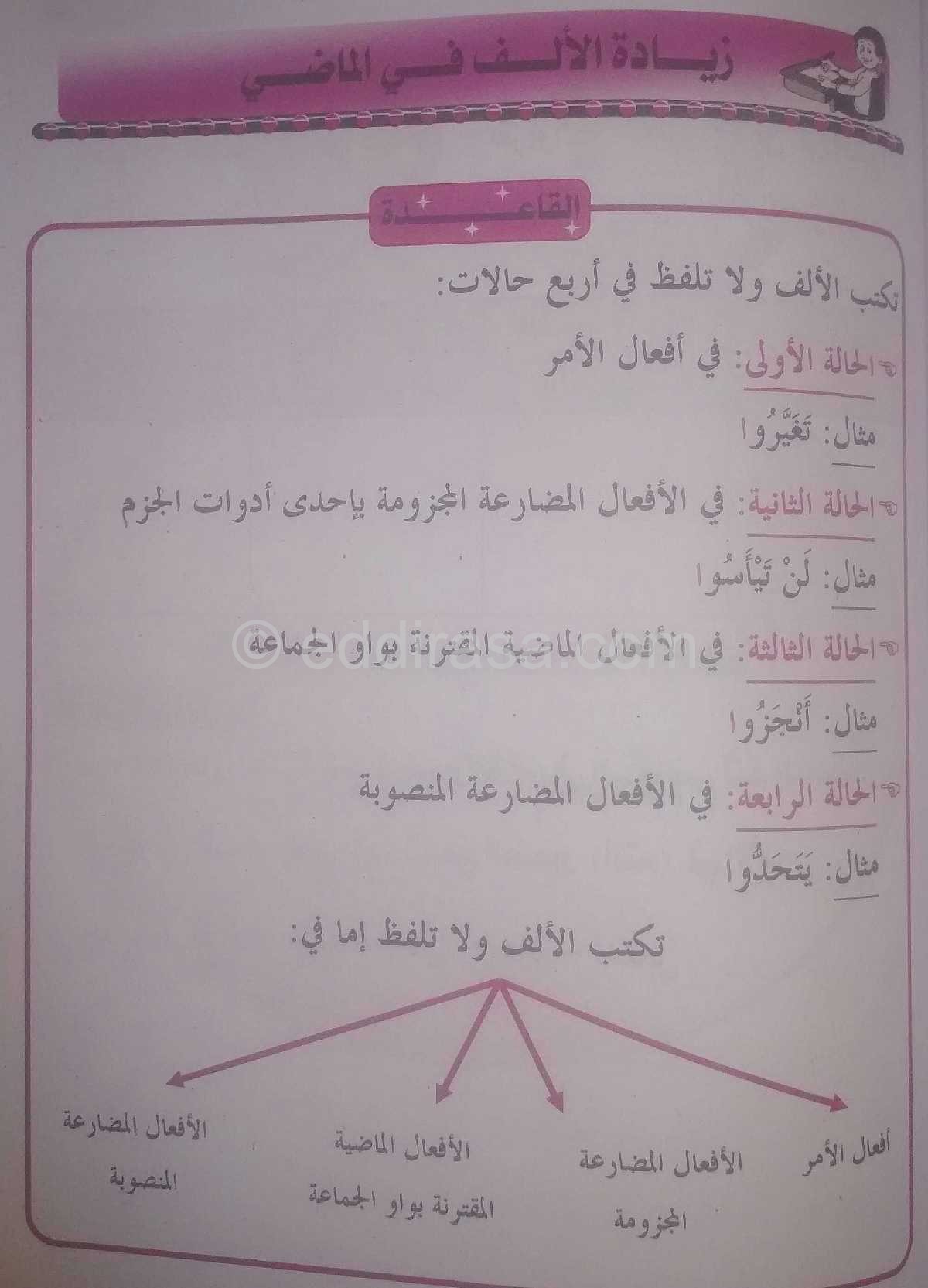 مادة : اللغة العربية : دروس مفصلة ، فروض واختبارات، تمارين محلولة: . دروس قواعد الإملاء – زيادة الألف في الماضي –  الجيل الثاني
