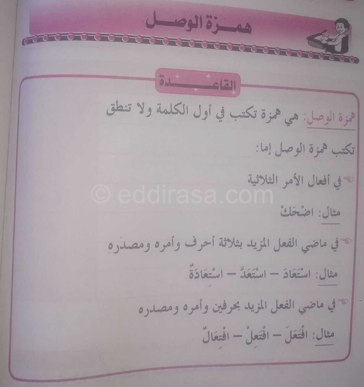 مادة : اللغة العربية : دروس مفصلة ، فروض واختبارات، تمارين محلولة: . دروس قواعد الإملاء – همزة الوصل –  الجيل الثاني