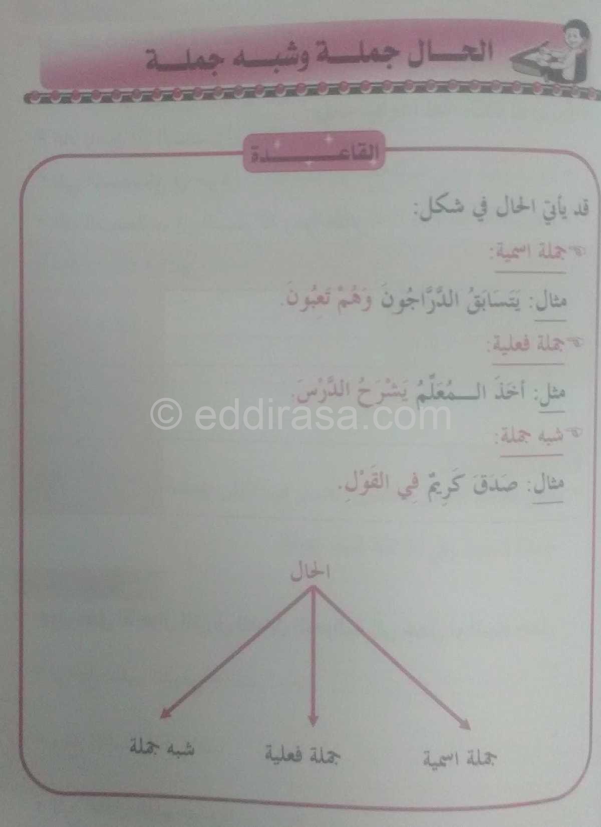 مادة : اللغة العربية : دروس مفصلة ، فروض واختبارات، تمارين محلولة: . دروس قواعد النحو – الحال جملة و شبه جملة – الجيل الثاني