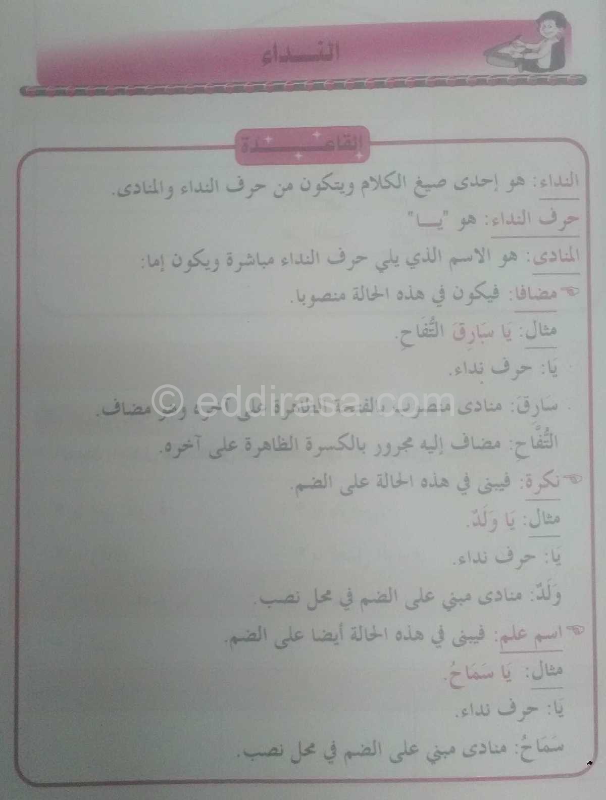 مادة : اللغة العربية : دروس مفصلة ، فروض واختبارات، تمارين محلولة: . دروس قواعد النحو – النداء –  الجيل الثاني