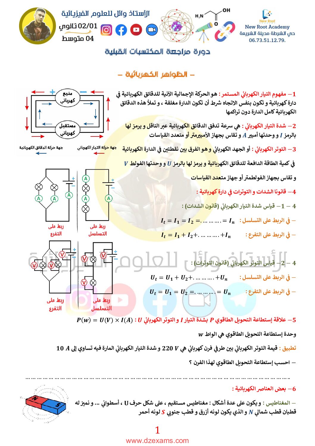 دورة مراجعة المكتسبات القبلية في العلوم الفيزيائية للاستاذ وائل 4 متوسط مادة العلوم الفيزيائية للسنة الرابعة 4 متوسط دروس مفصلة، فروض واختبارات، تمارين محلولة: المكتسبات القبلية في العلوم الفيزيائية للأستاذ خليفي محمد 4 متوسط ، تحضير شهادة التعليم المتوسط