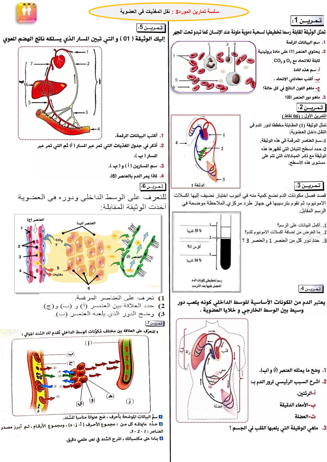 سلسة تمارين نقل المغذيات في العضوية 4 متوسط المجموعة 1 من مواضيع مقترحة مع الحلول في مادة العلوم الطبيعية 4 متوسط مادة العلوم الطبيعية للسنة الرابعة 4 متوسط دروس مفصلة، فروض واختبارات، تمارين محلولة: