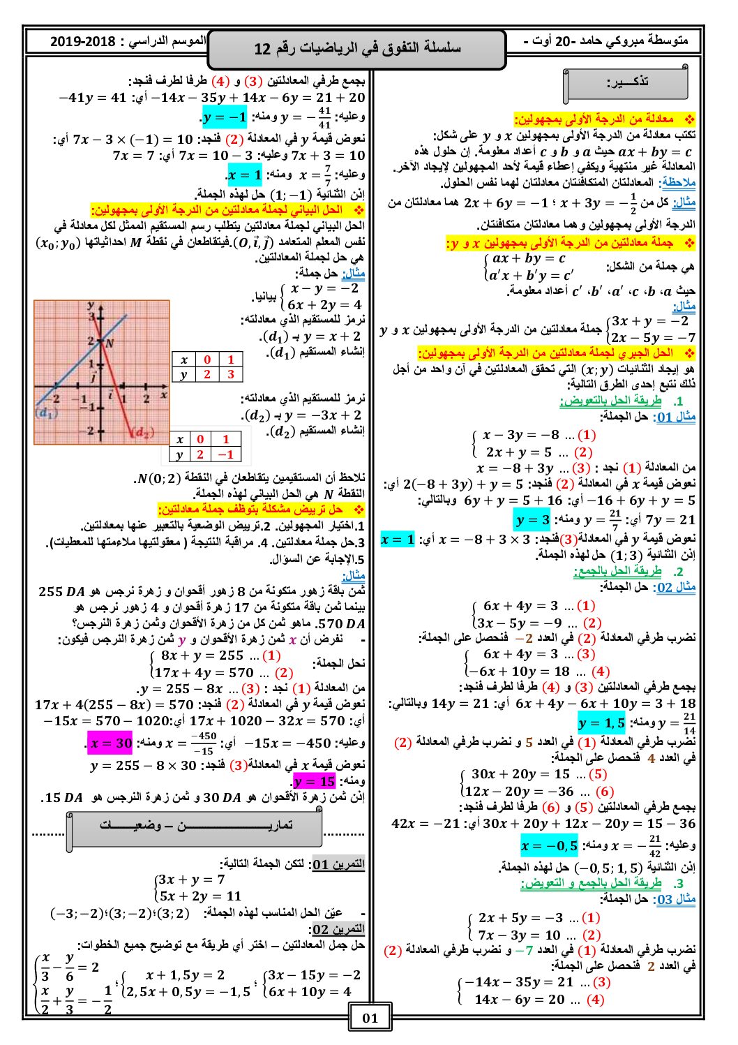 سلسلة التفوق رقم 12 في الرياضيات جملة معادلتين 4 متوسط 14 سؤال و جواب حول الدالة الخطية و الدالة التالفية في الرياضيات 4 متوسط : سلاسل تمارين وتطبيقات محلولة في الرياضيات سنة رابعة متوسط maths 4AM: ملفات تعليمية في مادة الرياضيات لتحضير شهادة التعليم المتوسط