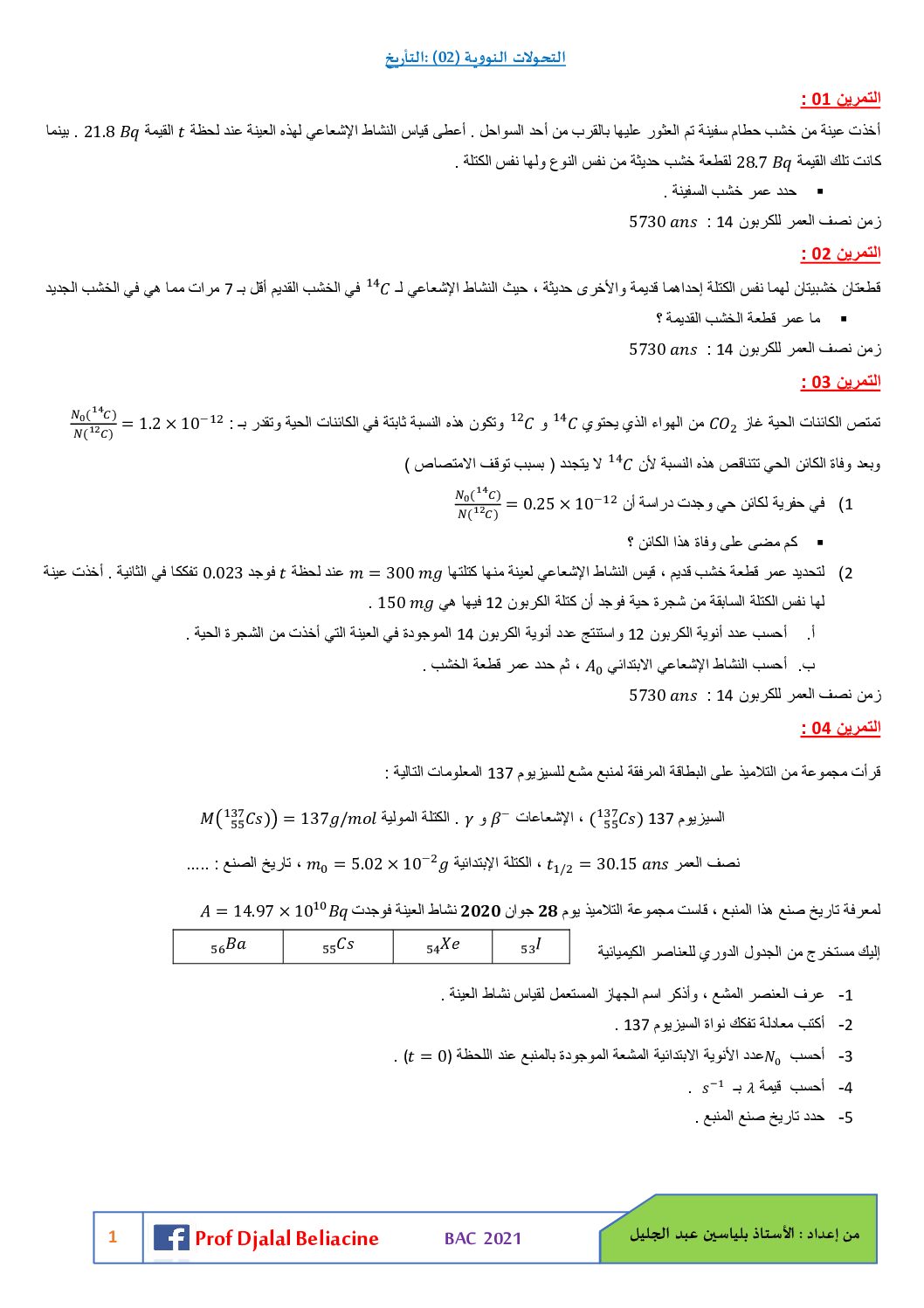 سلسلة تمارين التأريخ بالكربون مع الحل للأستاذ بلياسين عبد الجليل 3 ثانوي سلسلة ظواهر الانتشار في الفيزياء للأستاذ فارس فرقاني 3 ثانوي مادة العلوم الفيزيائية السنة الثالثة ثانوي : 100 سؤال وجواب نظري في الفيزياء لتحضير البكالوريا إعداد الأستاذ شريفي شعب علوم تجريبية ، رياضيات ، تقني رياضي: