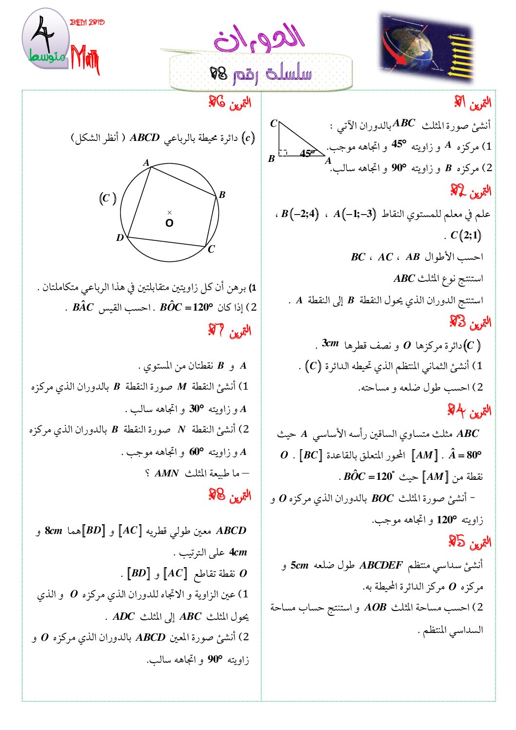 سلسلة تمارين الدوران في الرياضيات 4 متوسط 14 سؤال و جواب حول الدالة الخطية و الدالة التالفية في الرياضيات 4 متوسط : سلاسل تمارين وتطبيقات محلولة في الرياضيات سنة رابعة متوسط maths 4AM: ملفات تعليمية في مادة الرياضيات لتحضير شهادة التعليم المتوسط
