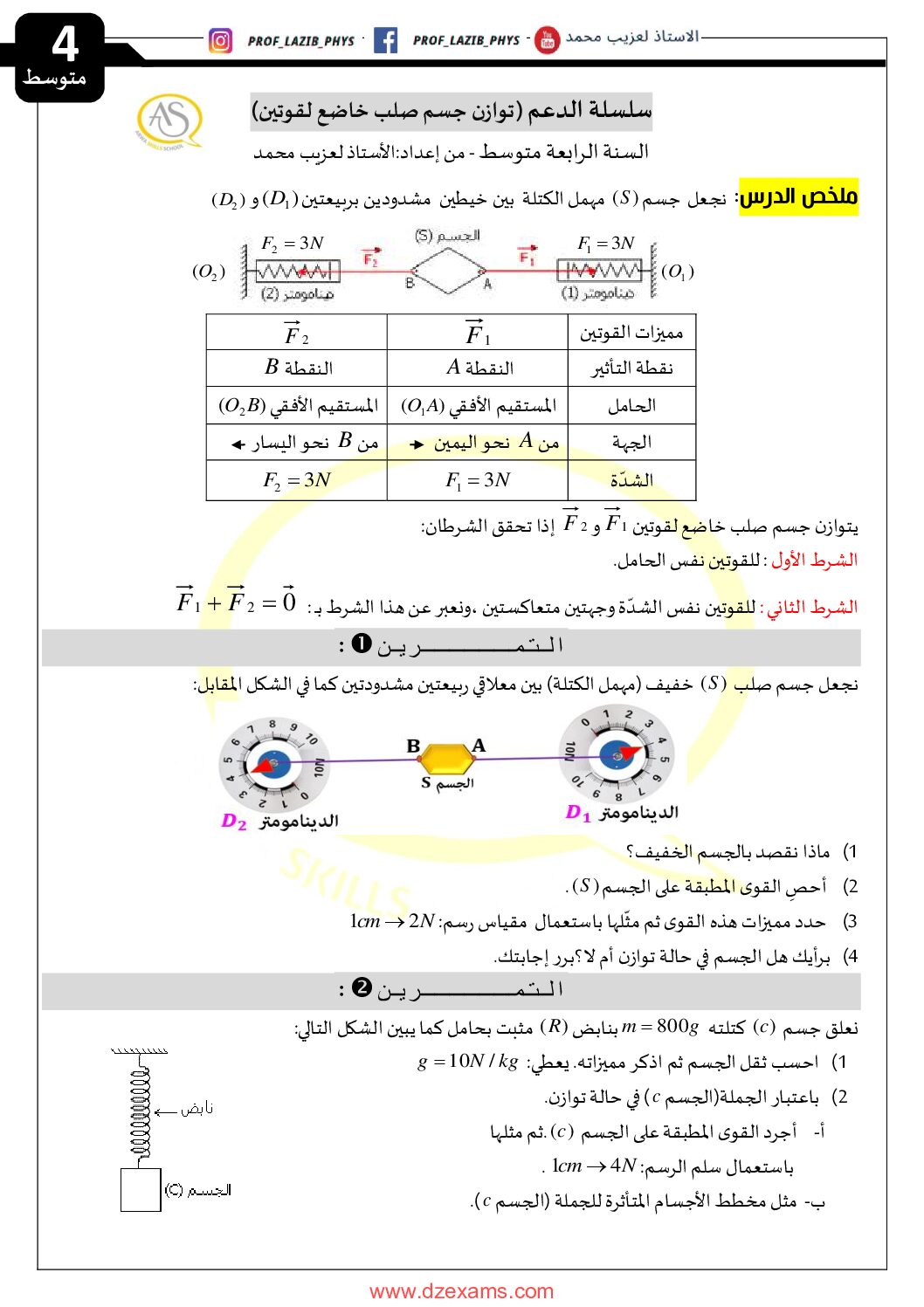 سلسلة تمارين توازن جسم صلب خاضع لقوتين مع الحل 4 متوسط مادة العلوم الفيزيائية للسنة الرابعة 4 متوسط دروس مفصلة، فروض واختبارات، تمارين محلولة: 17 تمرين حول الكهرباء الساكنة في العلوم الفيزيائية 4 متوسط ، تحضير شهادة التعليم المتوسط